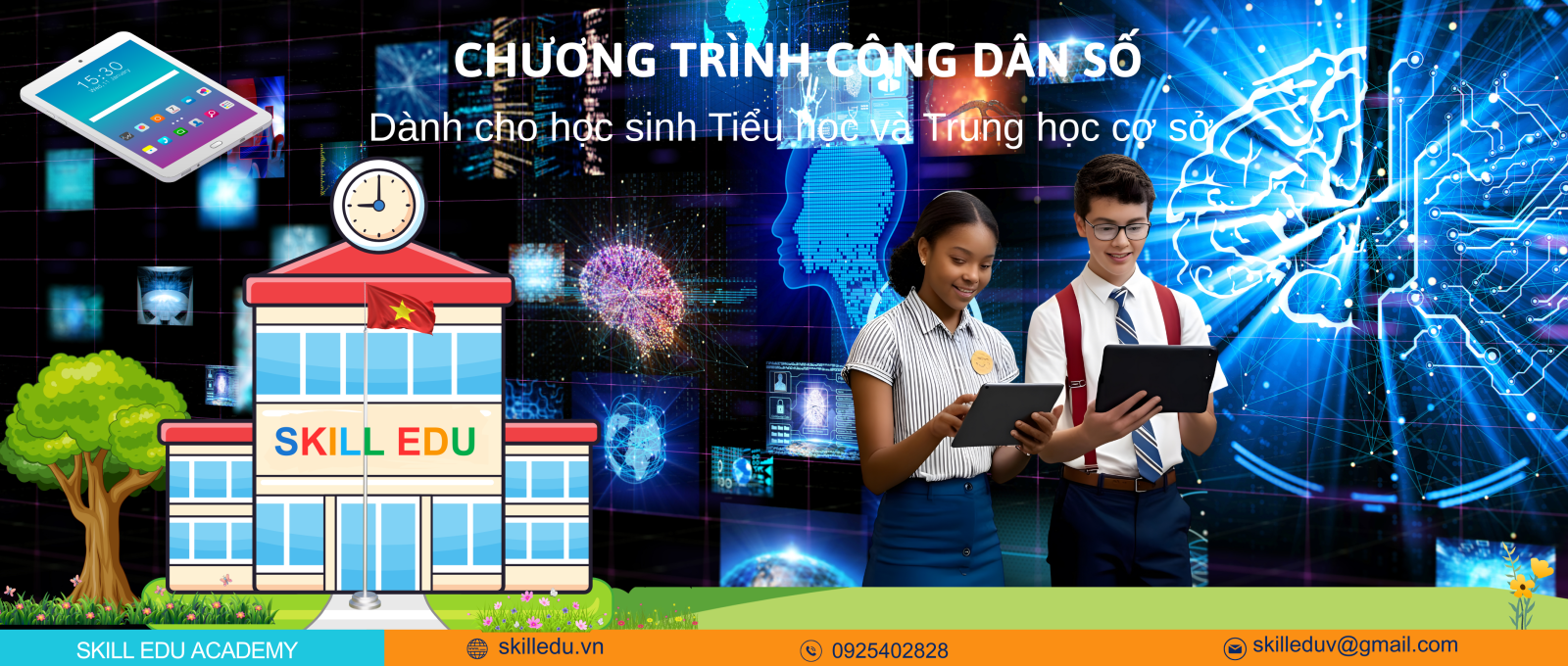 Trong kỷ nguyên chuyển đổi số mạnh mẽ, học sinh không chỉ cần biết sử dụng thiết bị mà còn phải trở thành công dân số thông minh – an toàn – sáng tạo. Chương trình Công dân số của Skill Edu được xây dựng theo định hướng của Bộ GD&ĐT, bám sát chuẩn năng lực thế kỷ 21, dành cho học sinh từ lớp 1 đến lớp 9, giúp các em hình thành nhận thức, kỹ năng và thói quen số ngay từ nhỏ.
